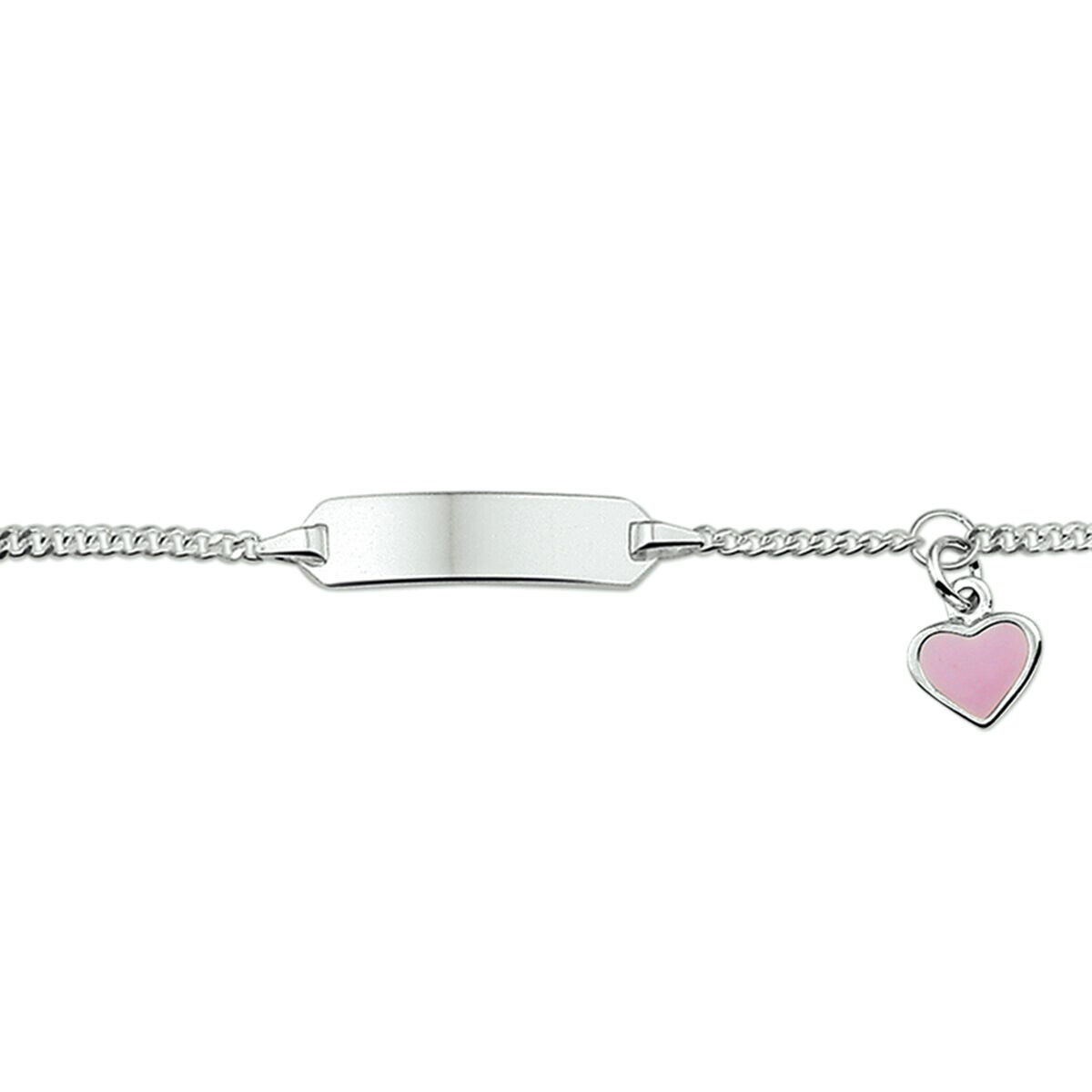 Zilveren graveerarmband met een hartje van roze emaille. De breedte van de graveerplaat bedraagt 5mm en de dikte is 0.4mm.