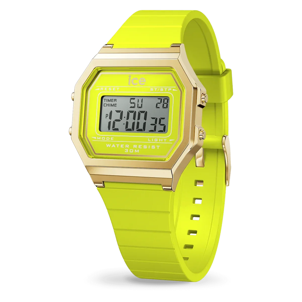 Laat je verleiden door de retro- en kleurrijke charme van de ICE digit retro - Sunny lime. De digitale aanduiding zorgt voor een duidelijke en handig afleesbare uuraanduiding, en in combinatie met de levendige limoengele kleur kun je dit horloge het hele jaar dragen: een portie broodnodige vitamines voor je pols!