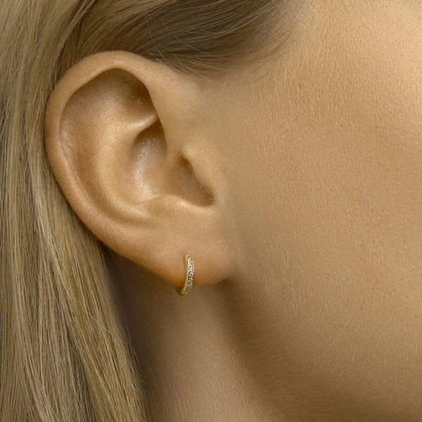 14k Geelgouden klapoorringen uitgevoerd met een schitterende zirkonia rij. De oorringen hebben een breedte van 2mm.