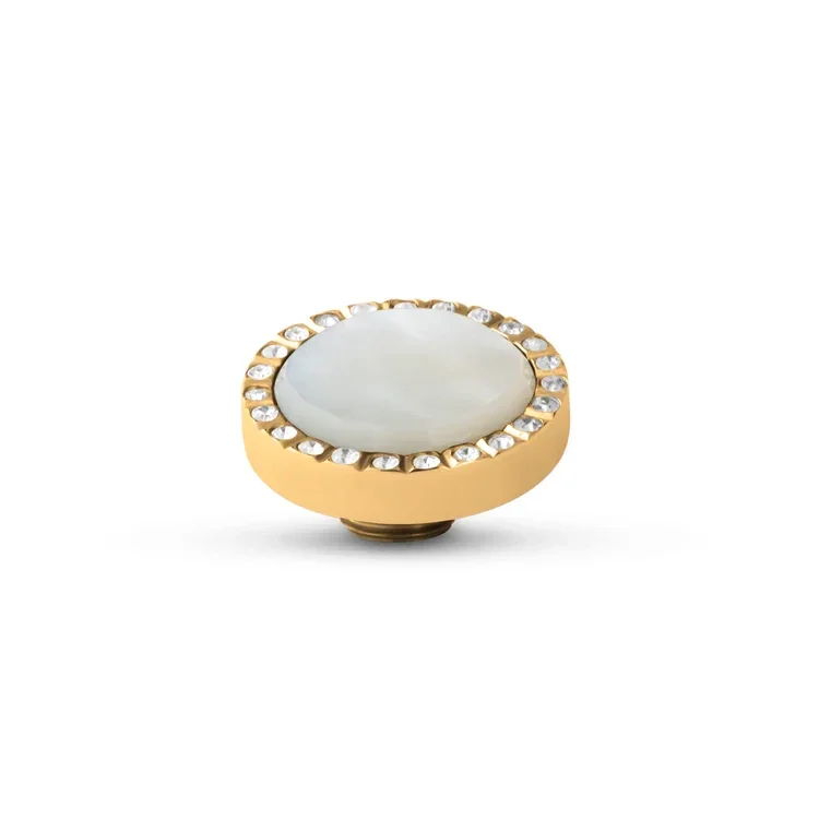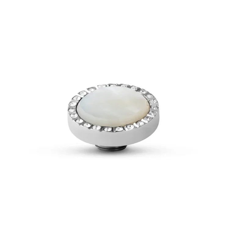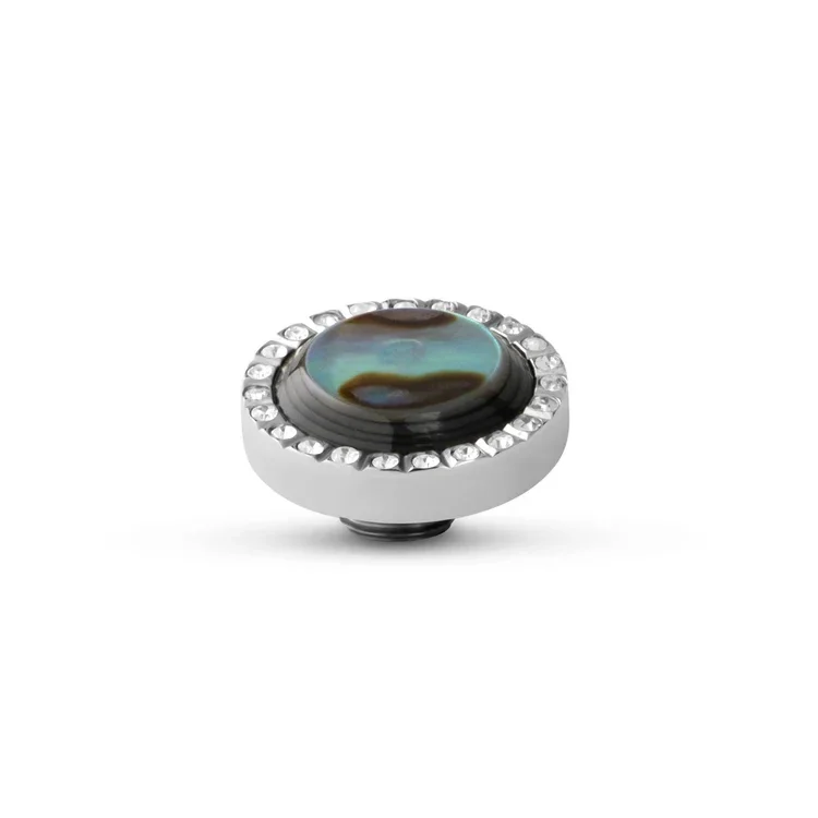Het Melano Vivid Sunny CZ steentje is als een stralend zonnetje! Als basis heb je de keuze uit Mother of Pearl of Abalone, omringd door verfijnde kristalkleurige zirkoniasteentjes die doen denken aan zonnestraaltjes. Het Sunny CZ steentje is 12 mm breed en is verkrijgbaar in een zilver-, rose goud- of goudkleurige plating.