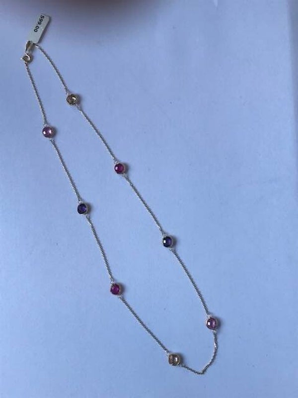 14 KARAAT GOUDEN KETTING MET KLEURSTENEN ZIRKONIA ROSE FUCHIA PAARS CHAMPANJE KLEUREN .