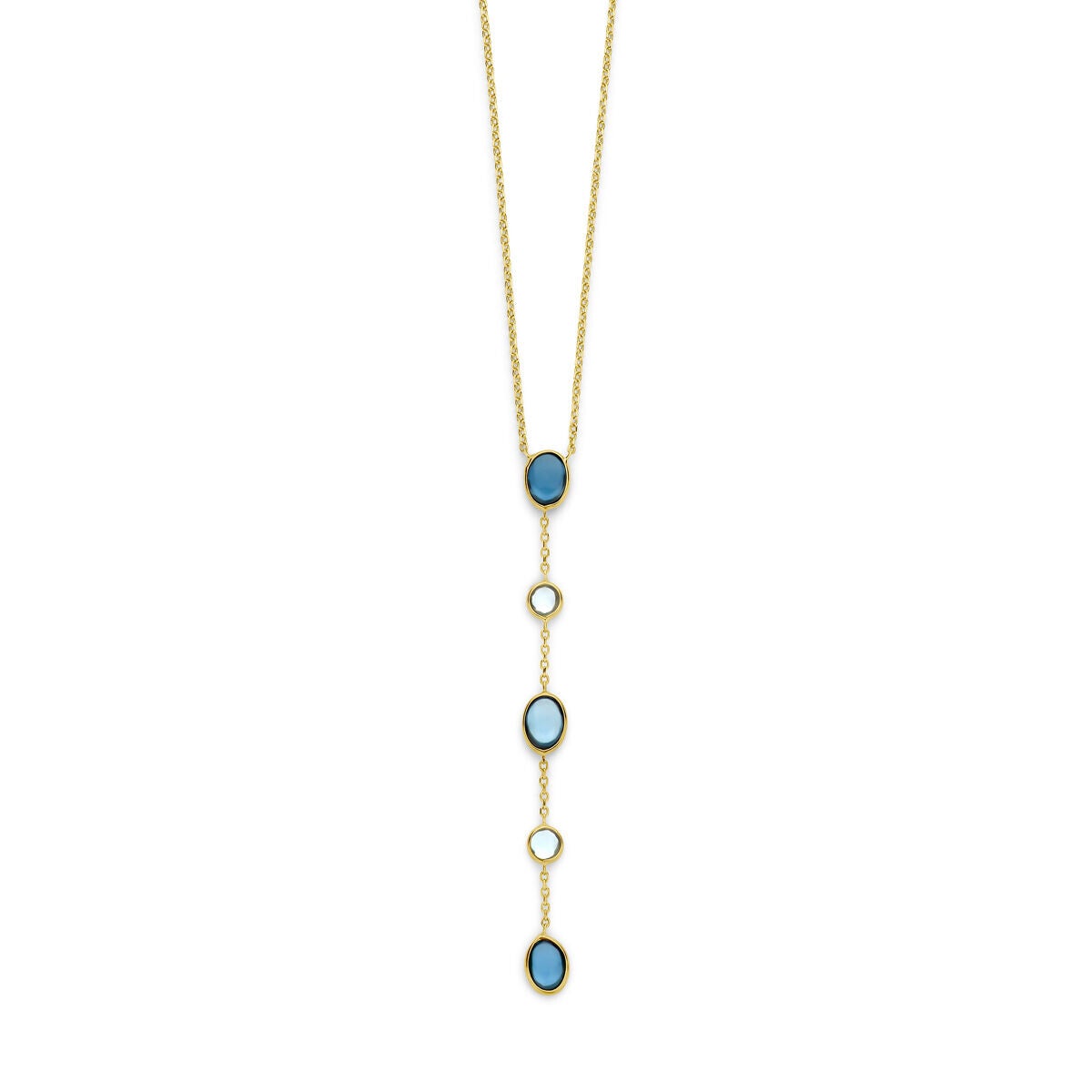 14k collier uitgevoerd met met london blue en blauw topaas. Het collier heeft een schakelbreedte van 1mm en draaglengtes van 45-47cm. Uitgevoerd met karabijn sluiting.