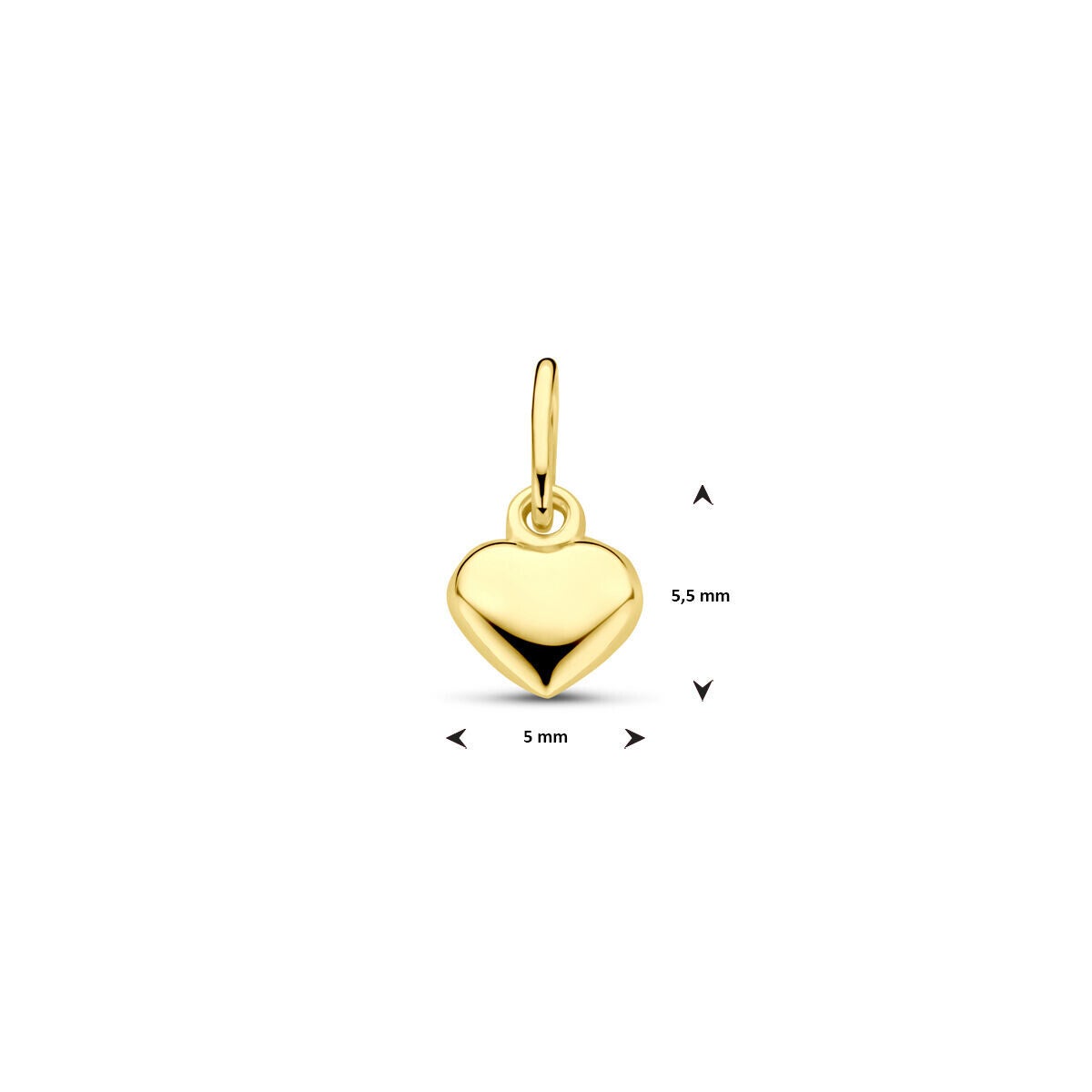 Geelgouden hanger met een hart uitgevoerd met een stevig hangoog. De hanger is ook verkrijgbaar in het wigoud.5-5.5 MM