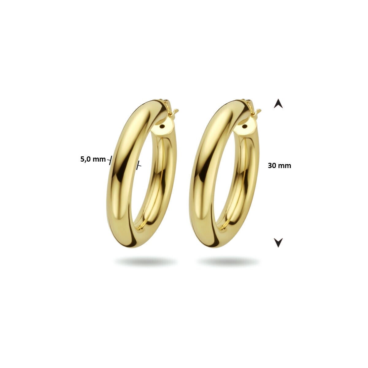 Verguld op 925 zilveren oorringen. De oorringen hebben een dikte van 5mm. Geen garantie op plating.30 X 5 MM