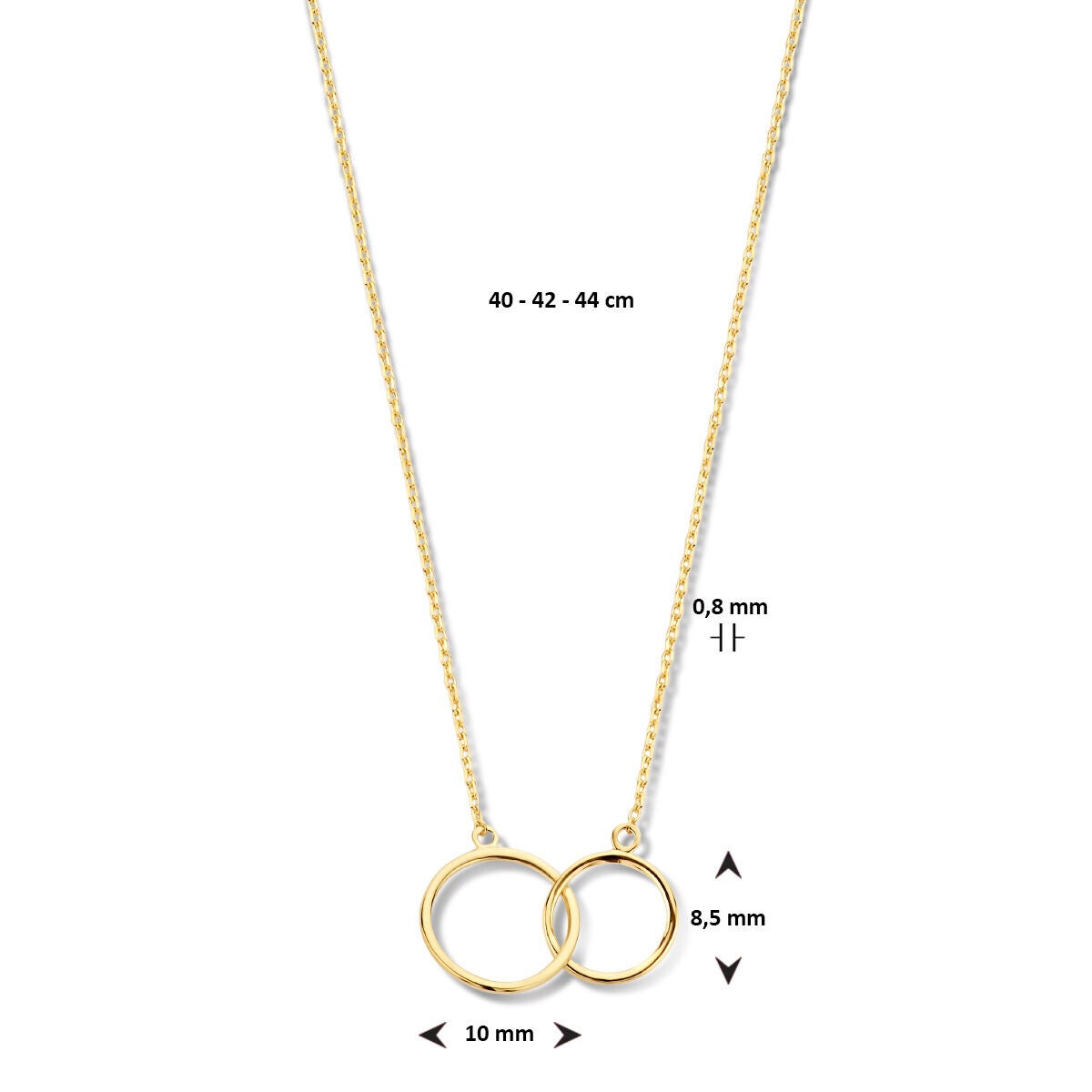 Geelgouden collier met twee open rondjes. De lengte bedraagt 40cm met 4cm extensie en de schakelbreedte is 0.8mm.