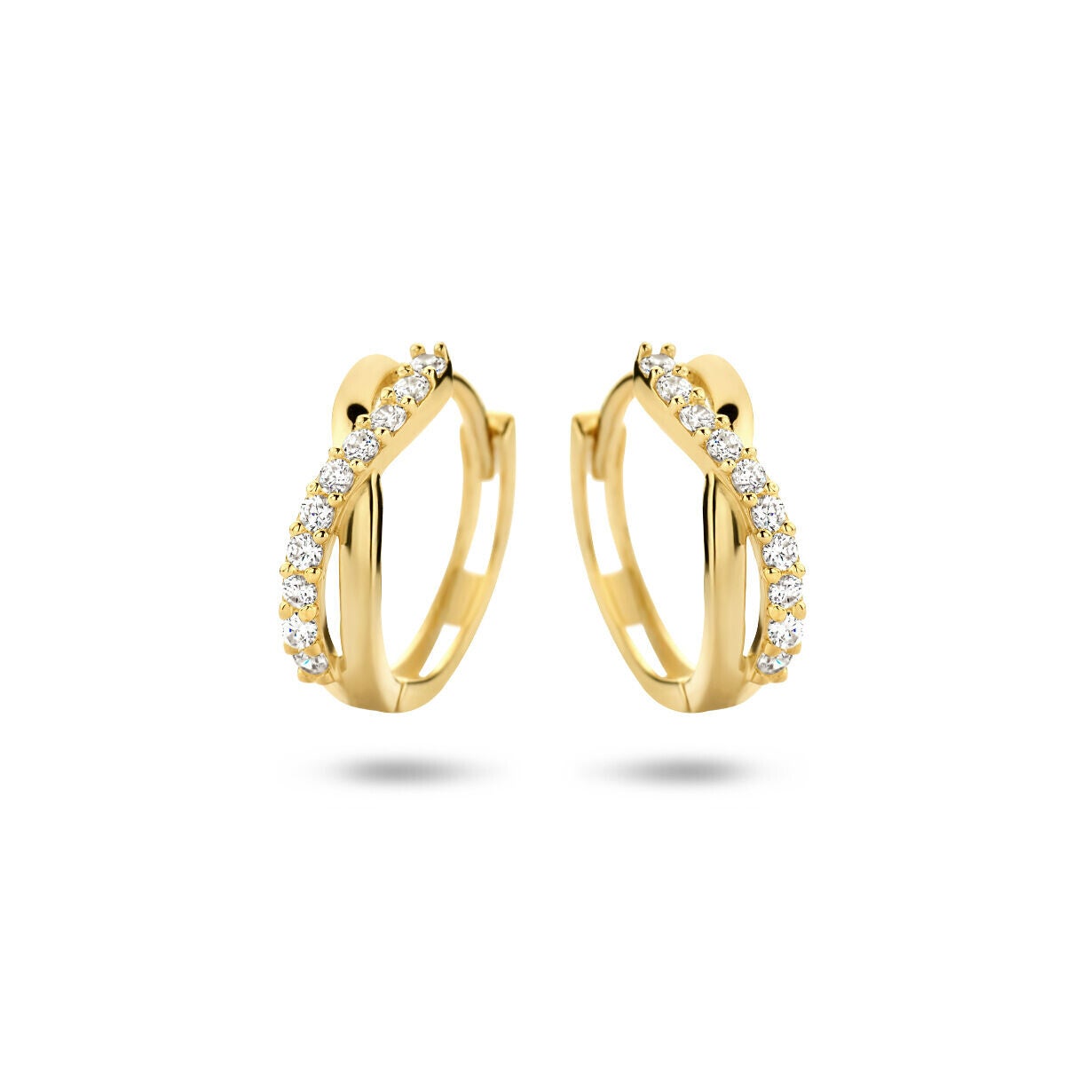 9k Geel kleurige klapoorringen uitgevoerd met zirkonia met een afmeting van 12.5x3.5mm.