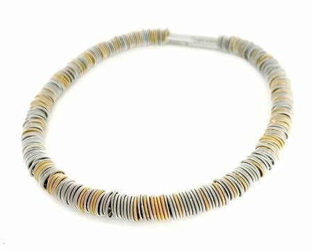 Het materiaal van het collier is edelstaal, de lengte van het collier is 46 cm en de collier heeft een magnetische sluiting. Bij dit collier is gebruik gemaakt van de kleuren zilver en goud.