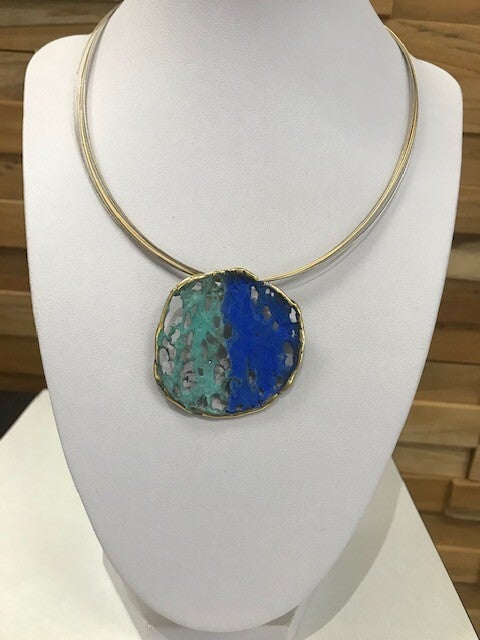 Fili plaza hanger met collier gemaakt van brons,collier rvs 7 draads bicolor 42 cm.