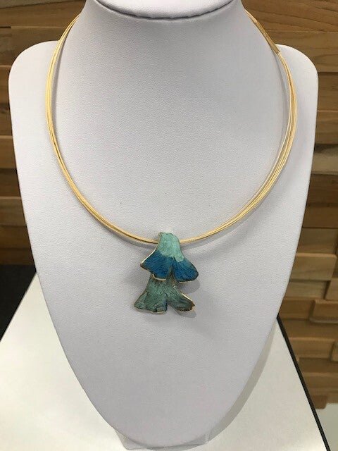 Fili plaza hanger met collier gemaakt van brons,collier rvs 7 draads goudkleur lengte 42 cm.
