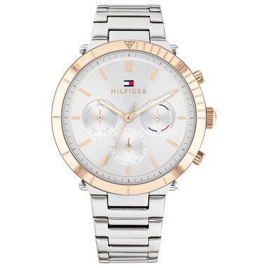 Dit trendy dames Tommy Hilfiger TH1782348 horloge beschikt over een quartz uurwerk en een prachtige zilverkleurige band. De kleur van de rond kast van dit dameshorloge is rosé-goud,zilver. Het glas van dit horloge is gemaakt van een sterk mineraal glas. Dit prachtige horloge van Tommy Hilfiger is gemaakt van staal. De wijzerplaat is in de kleur zilverkleurig.