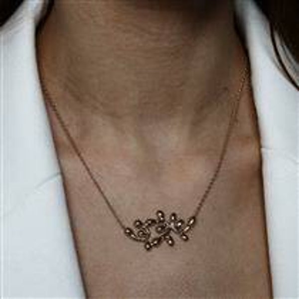 Deze geel goud vergulde zilveren ketting kan op 42 en 45 cm gedragen worden. In het midden van de ketting bevind zich een moderne look hanger.