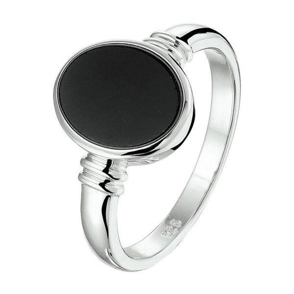 Stijlvolle gerhodineerd zilveren ring met een onyx steen en een poli afwerking. Info: Gerhodineerd zilver is door de rhodiumlaag beter bestand tegen verkleuren en krassen.