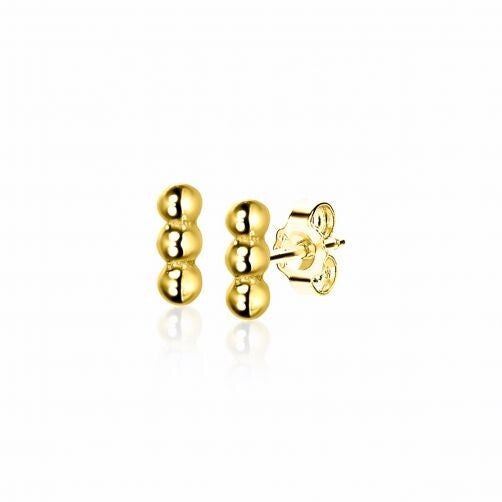 ZINZI zilveren 14K geelvergulde gladde oorknoppen 6mm met trendy drie bolletjes in een rij. De bolletjes zijn 2mm groot. De oorsieraden zijn vervaardigd van eerste gehalte zilver (925) en voorzien van 14K geelvergulding.